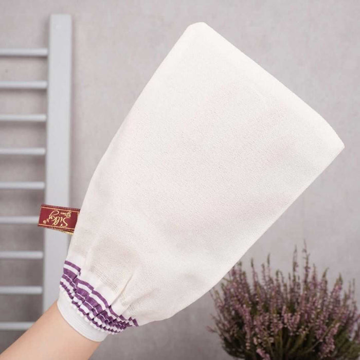 Classic Turkish Hammam Exfoliating Glove – White 100 Viscose Cross-Woven Fabric Deep Peeling & Elastic Wrist Design