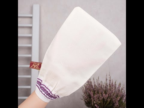 - Wet the glove and gently rub your skin using firm, upward or circular motions.