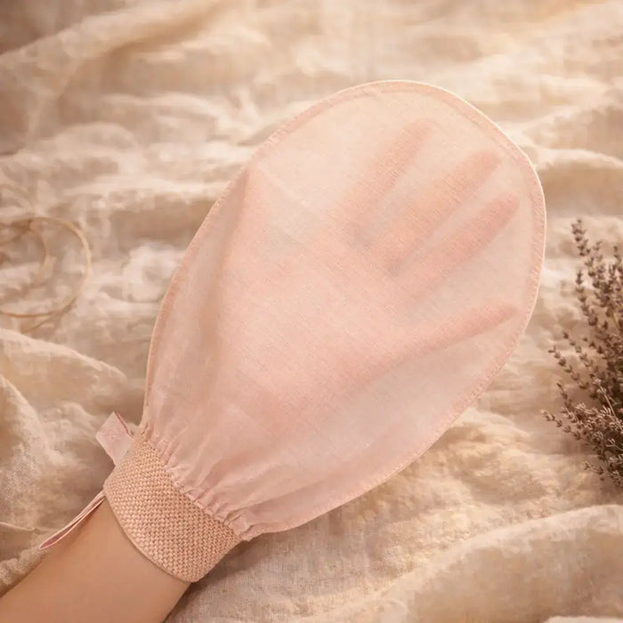 - Exfoliate: Wet the glove, wring out, then gently glide for 1–2 minutes (no hard pressure).